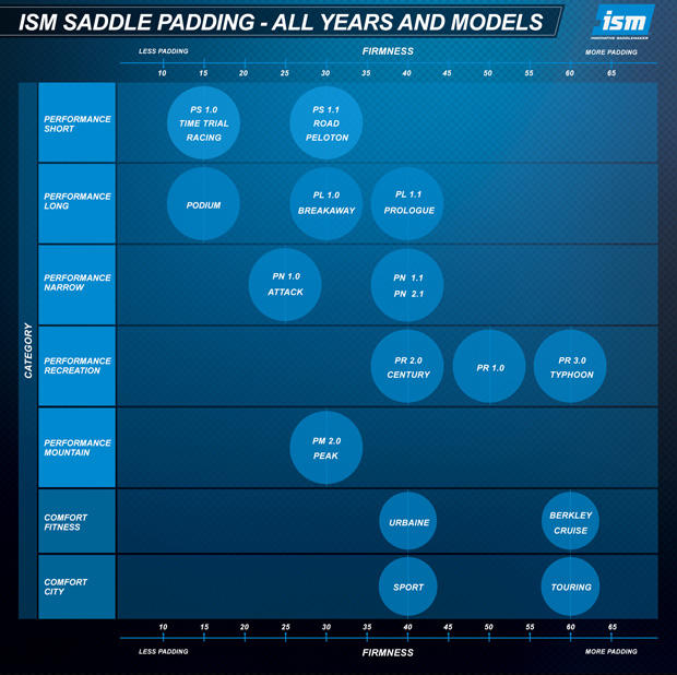 The chart below from ISM shows where all their saddles fall in terms of padding.