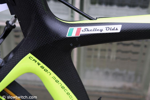 Olds is only 5 feet 2 inches and thus the tiny Cipollini Lógos frame.
