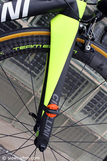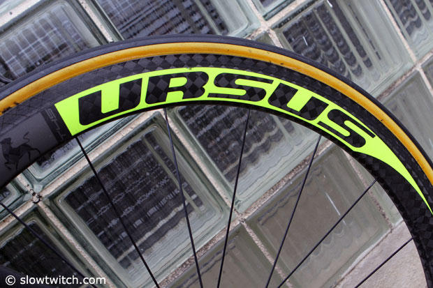 Italian Ursus carbon wheels with Vittoria Corsa CX 23 tires.