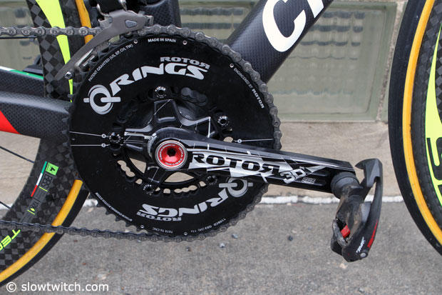 Rotor 3D cranks and Q rings are the setup for this sprinter.