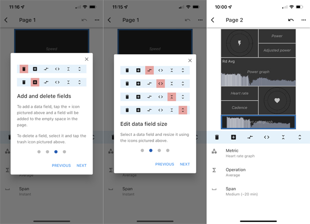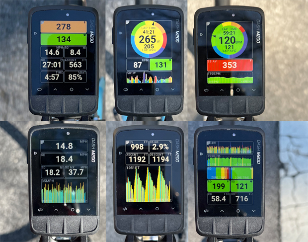 Another dominance ingredient is that most of the metrics have many possible ways that you can aggregate or average them. Typical computers offer you a few popular options. But the Dash lets you choose the mathematical operation (average, minimum, maximum, total) and span (instant, 3 second, 10 second, 30 second, 1 minute, 5 minute, 10 minutes, 20 minutes, 1 hour, current lap, last lap, ride) for each metric. If you can imagine it, you can do it. Something like this would be great for time trial pacing, where you could have similar data pages of key metrics but for different time spans.