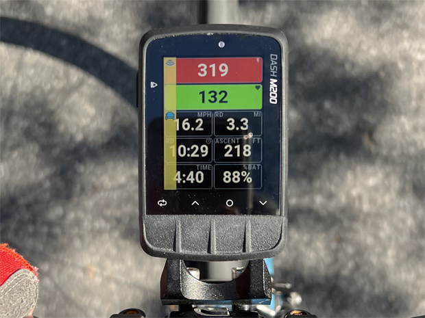 It is difficult to do a structured workout on the road, because you are constantly battling real world dynamics. Then you need a visualization that helps you maintain your targets. These two are what earns the Dash high marks. You can set up your workouts so that they do not have to align to the ride in general. The intervals can run and then wait for you to go on to the next section. This is helpful if you want to extend a warm-up or recovery while road conditions allow for a better high intensity section. (For example, it is almost pointless to attempt a low cadence, high power drill on a 5% downhill, so just start that interval at the bottom of the hill.) All of this is more complicated than other devices, so you may have to read the manual or search the Internet, but the results are worth it.