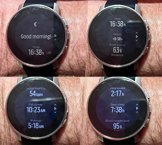 Morning Report is another new special analytics feature worthy of its own section. Every morning, the watch gives you a review of how you slept to prepare you for the day ahead. It prompts if you are ready to view it, and then gives a scrollable list of your preview of your day. Sleep time, sleep quality, fell asleep and wake up times, blood oxygen, and resting heart rate. The app tracks and charts all these metrics but having them easily offered each morning is both fun and informative when you see them as they occur.