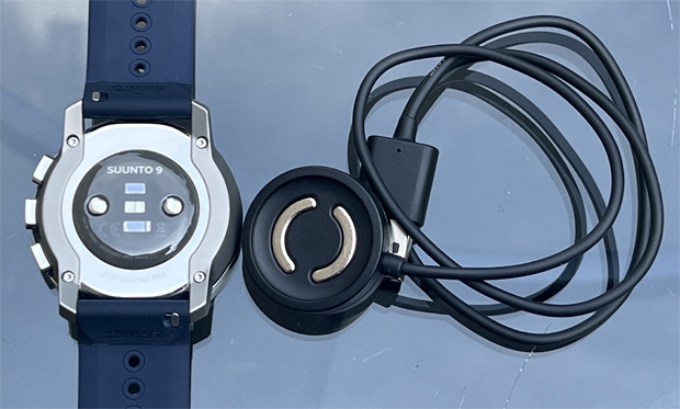 The charger is another user interface feature worth highlighting. Instead of some finicky plug or clip that needs perfect alignment, the Suunto 9 Peak has a magnetic base with two curved contacts that snap against the two contacts on the back of the watch. It is easy, and nearly impossible to mess up.