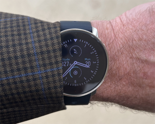 The touchscreen has the usual up, down, left, right, tap, and double-tap actions. Up & down swipes mimic the actions of the top and bottom buttons. Tap mimics the middle button. And the left and right swipes scroll through screens or perform a “back” action, depending on the context. This is intuitive and works great for the usual menu scrolling and especially well for scrolling through the insights from the main watch screen. You can navigate anywhere in the watch without using the buttons, until you get to starting an exercise. You will quickly get attached to the touchscreen if you are coming from decades of hard buttons on sport watches.