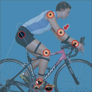 The Retul "motion capture" system is often called a "system" not because of a step by step protocol for divining proper bike fit, but because this "tool" has a lot of parts, and there is a "system" for using this tool, just as there is a "system" for using a torque wrench. Nevertheless, its function is simply to measure. When you use it to measure the knee angle when discovering seat height according to the Holmes Pruitt method, you're using a dynamic tool in concert with a dynamic method. This is the acme in bike fitting. This is the state of the art. Why? Because the Holmes Pruitt method is technically correct and precise, but whenever you stop an athlete's pedaling to measure his knee angle, there is always the question: What "noise" does this create in the numbers? What is the difference in a static knee angle aboard a bike at BDC versus his knee angle measured on the bike, while riding, without the need to stop pedaling?