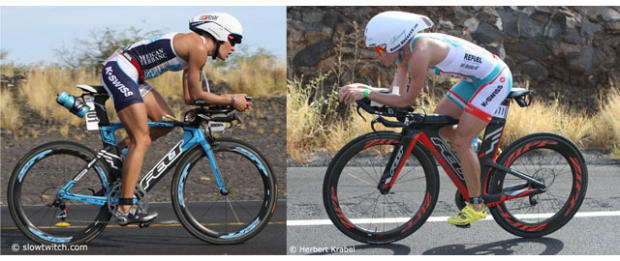 But it’s not too late! I keep writing this benchmark: 5’5”. The average height of an adult woman in America is 5’4” (and I expect the median height is similar, which means half of all women triathletes should be on 650c. If you’re 5’7” (Karen Smyers), 5’10” (Leanda Cave), 5’7” (Chrissie Wellington), 5’9” (Daniela Ryf), you don’t need a 650c bike. It’s understandable why you didn’t use a 650c bike when you raced and won Kona. In my opinion, Mirinda Carfrae (5'3 1/2”) is a marginally better fit aboard a 650c bike, but she has won Kona on both wheel sizes (below).