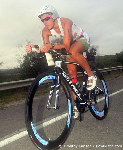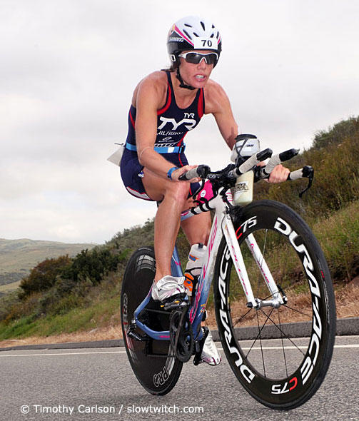 Melanie McQuaid was first off the bike at the 70.3 California.