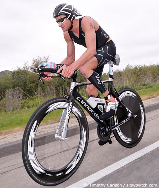 Former Pro mountain biker Michael Weiss put down the fastest bike split on the way to 3rd place.