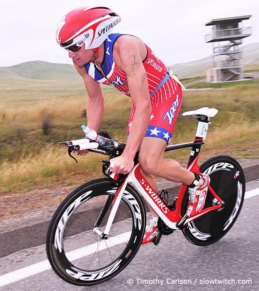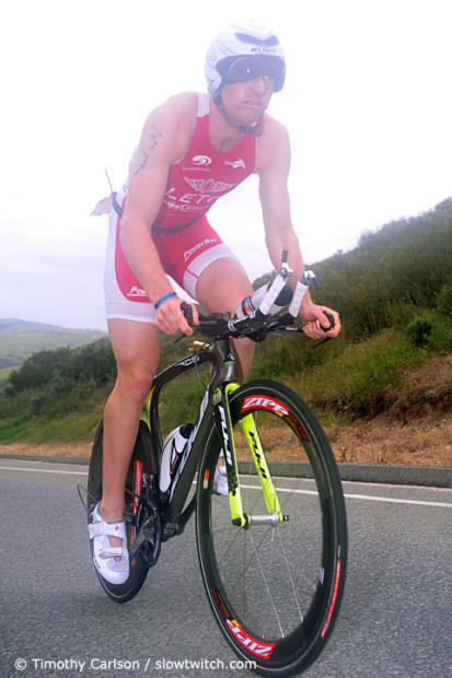 Kyle Leto had a great swim but dropped out of the front group after a flat.