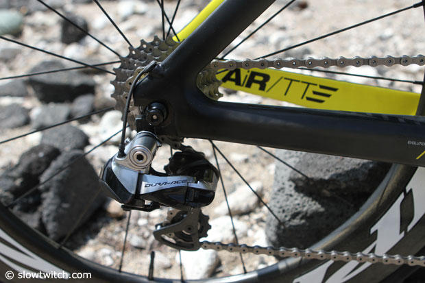 This bike had Shimano Dura Ace Di2 components but Pete Jacobs rides a SRAM equipped bike.