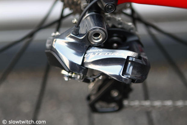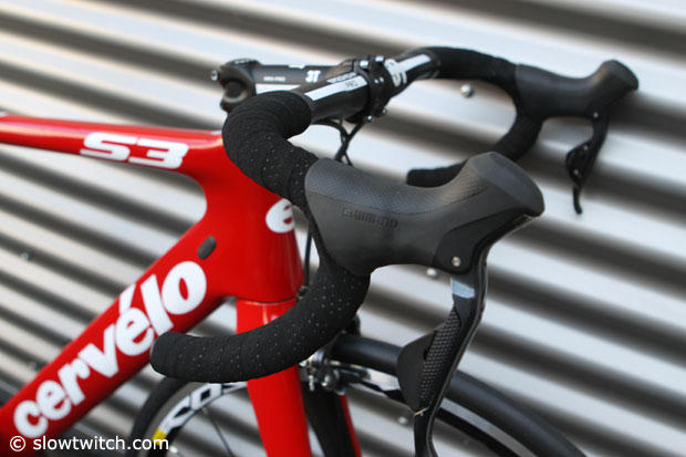 The Cervelo S3 features Shimano Ultegra controls.