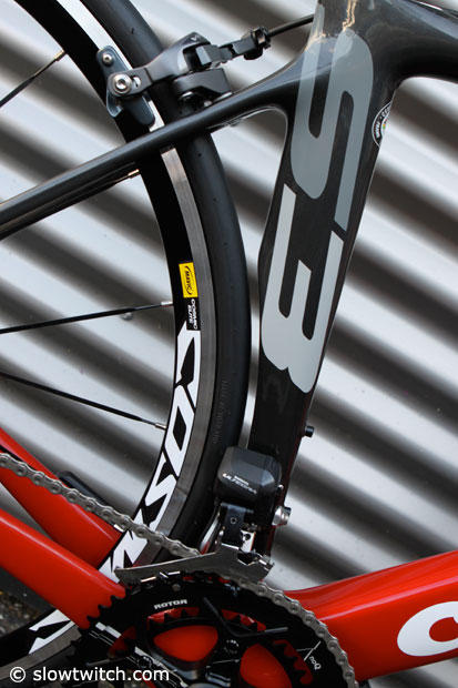 Mavic Cosmic Elite wheels are laced with Vittorio Diamante Pro Light 23mm tires.