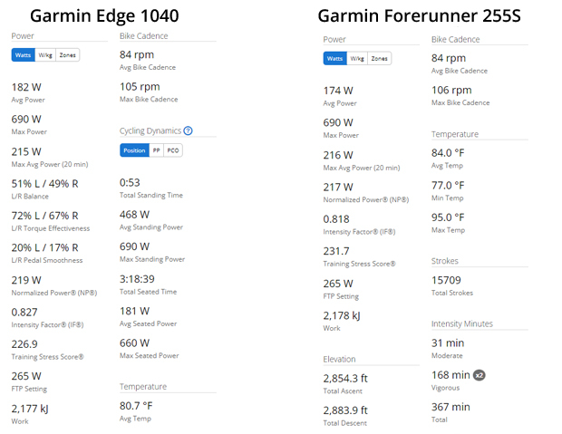 Real-time stamina is a new watch widget that shows real-time exertion levels during a run or ride and charts on Garmin Connect that show your stamina history. This is fun for post-activity analysis, but I have not used the real-time widget during an activity. Usually when I am in an interval or hard climb, my brain is too fogged to make sense of the data on the widget.