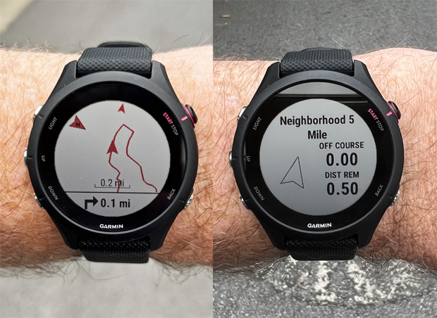 You can load a route into the 255S for breadcrumb mapping, but it does not have a base map with street-level to show you where you are and do rerouting. Breadcrumb mapping works well for most situations, and I used it for years before full navigation and mapping arrived on multisport watches.