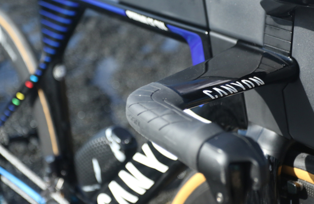 Lange and the Canyon team spent some time earlier in the week shooting photos out on the course. From this shot, it appears he still rides a Cobb Fifty Five saddle.