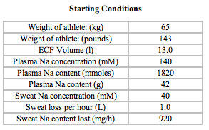 The mathematical model described below may be worth considering as it relates to the importance of your electrolyte and fluid replacement strategy.