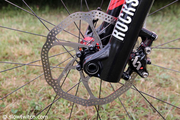 SRAM XX 160mm disc brakes handle the stopping.