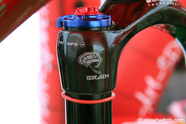 The fork crown of the RockShox of Conrad Stoltz.