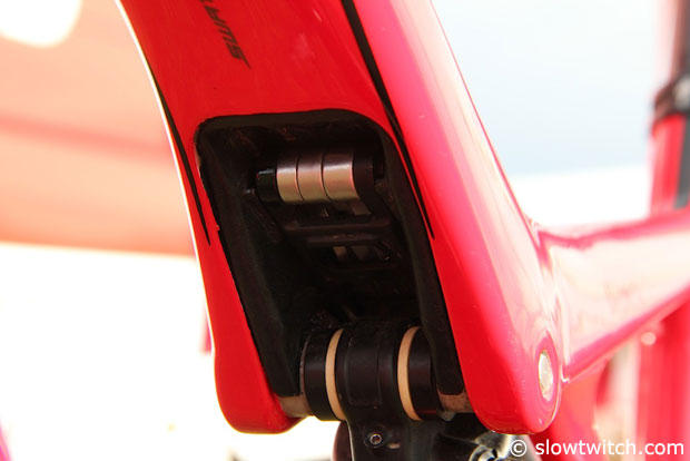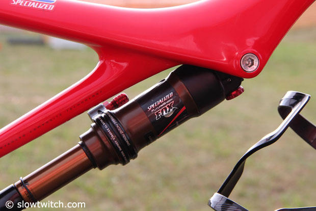 Up close with the Fox rear suspension unit.