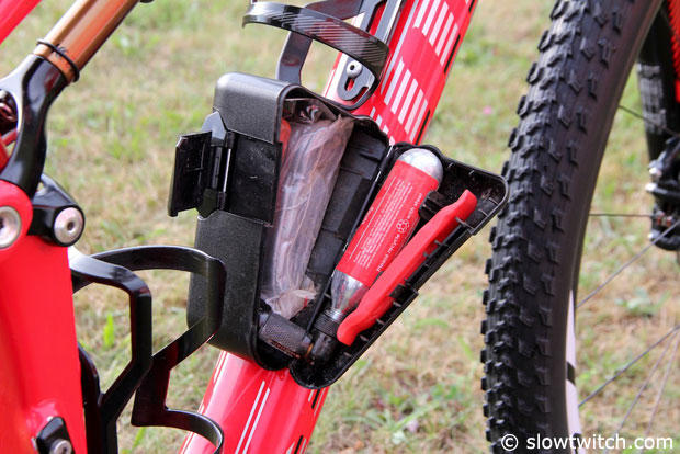 The SWAT box on the downtube allows Conrad to store some tools.