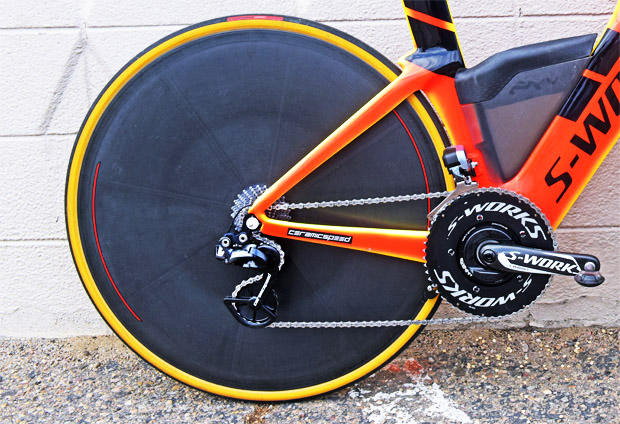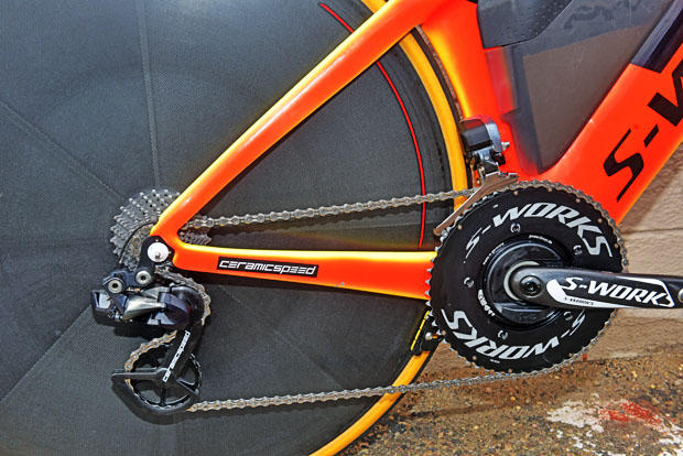 Tim Don rides Specialized S-Works 167.5mm cranks with 55/42, and a Ceramic Speed UFO chain.