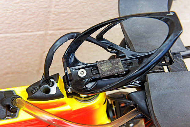 Hydration between bars and Di2 routing (junction box under saddle) custom by Jeff Yingling at Ceramic Speed.