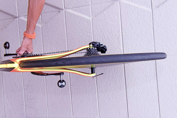 Don’s rear wheel is a “disc wheel prototype 007 from Roval that is still in development” with a 26mm Specialized Turbo Cotton tire.
