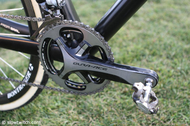 The XTR pedals seem to be modified and Nys rides 48/39 chainrings.