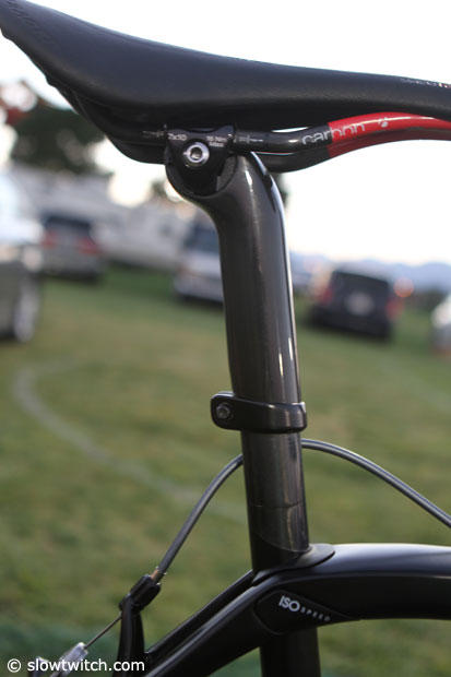 The saddle is a Bontrager Serano RXL and the seat post setup is the same as on the Madone.