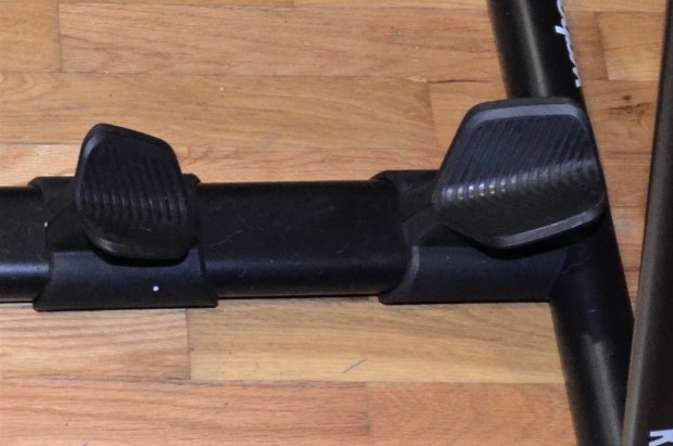It isn’t even necessary to adjust the height of the front wheel to level the bike (assuming you have the same diameter wheels/tires on the front and the rear). This makes taking a bike on and off the trainer incredibly quick and easy, easier than any other trainer I have used, literally one operation removed from the “put the bike on and ride” simplicity of rollers, while still completely removing the rather steep learning curve of those devices…