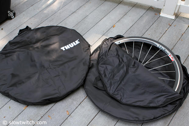 Thule provides wheel bags with the RoundTrip and we made sure the wheels got in properly.