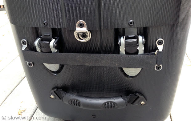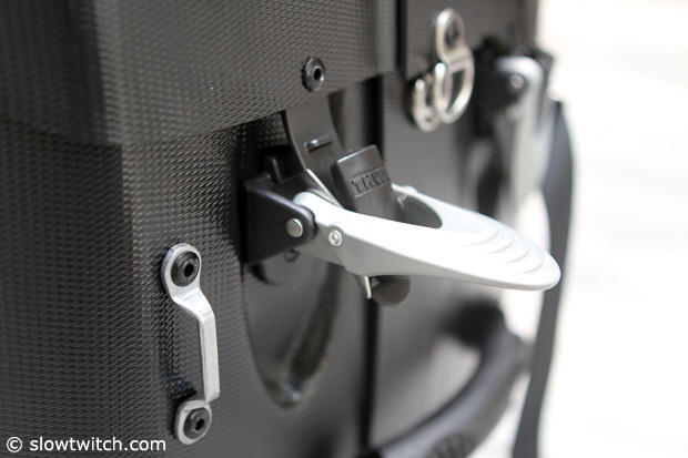 You hook the top of the RoundTrip on one end and you then close to buckles on the other side. We opened and closed the case many times and had no problems with the closure system.