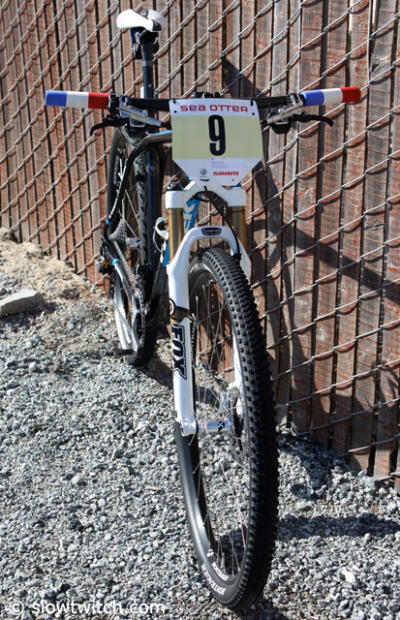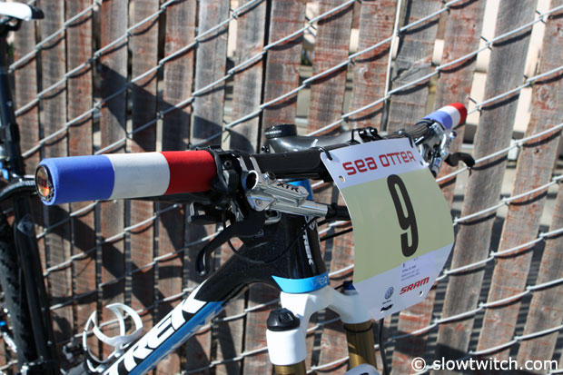 His bib number at Sea Otter was 9 and the grips are a reminder of his Olympic start.