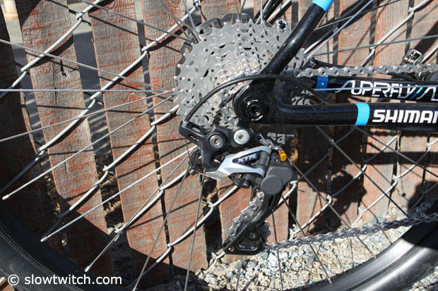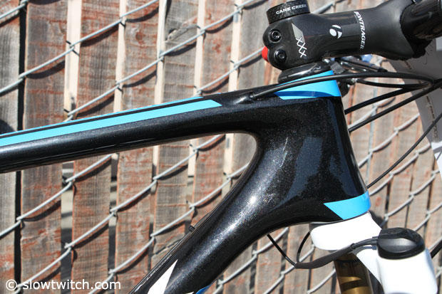 While in Monterey, CA we had the chance to look closer at the Trek Superfly SL Team Edition race bike of US Olympian Sam Schultz of Missoula, MT. If the town sounds familiar, this is also where Ironman champion Linsey Corbin resides. The bike featured here carries Sam Schultz on selected courses and a stock edition of this Superfly could see you through a variety of XTERRA challenges or just some fun mountain bike riding.