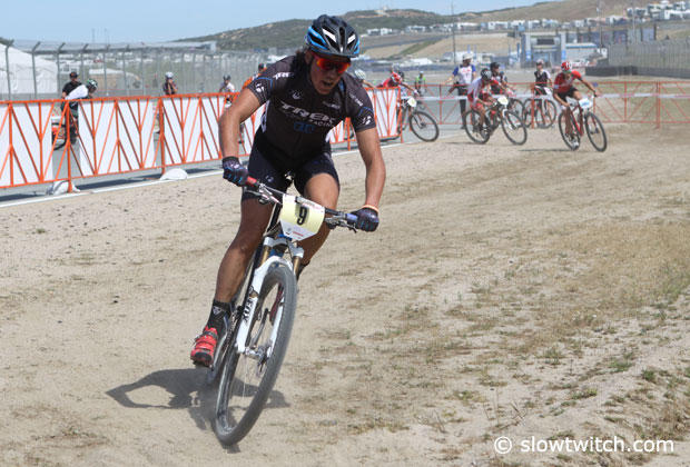 Sam Schultz in action during the Sea Otter Classic short track event.