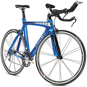 Next up from the Equinox TTX 9.0 is the 9.5 (the red bike pictured). It’s $800 more, and it’s got the black carbon versus the white, and Ultegra versus 105. It’s also got Bontrager aerobars, which I’m assuming are nice since Bontrager has worked hard to replace the HED bars under Lance and his Discovery teammates with Bontrager bars the Discovery Team could successfully ride — but I have no firsthand knowledge of these bars.