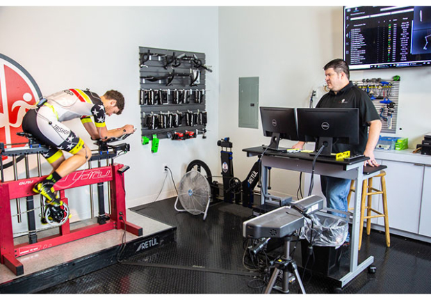 Time is money. You can’t easily make changes to a position to conform to a motion capture system’s angular range unless those positional changes can be done quickly. Which means a conforming fit bike! Trent has two: a GURU Gen 1 and a Retül Müve. Trent will use the GURU most of the time. Why? Not because it’s a fancy shmancy motorized fit bike, but because it instantaneously reads the metrics, as he’s fitting. Data is also money.