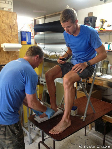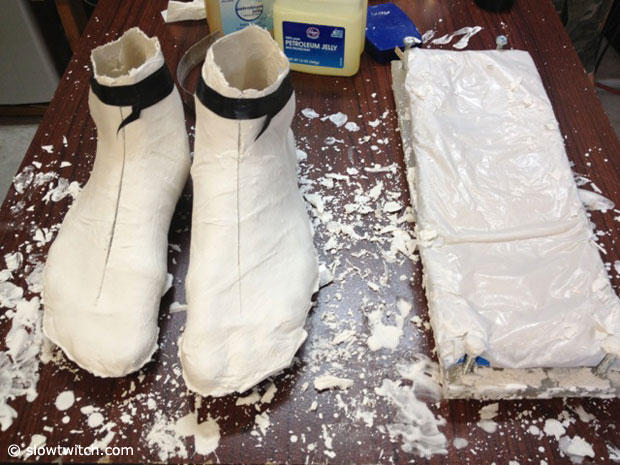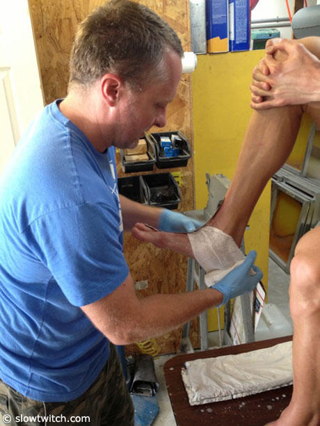 Brad takes Balazs' massive size 14 feet through the molding and casting stage.