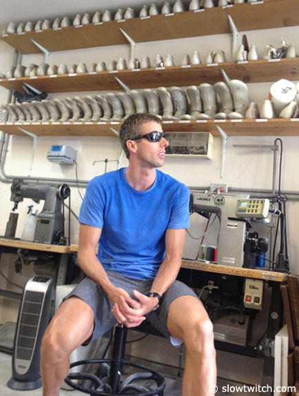 Earlier that day Balazs sat down for his initial interview in front of a few shelves of foot molds. Balazs was coming off an eye surgery and doctors' orders had him wearing shades throughout the day.