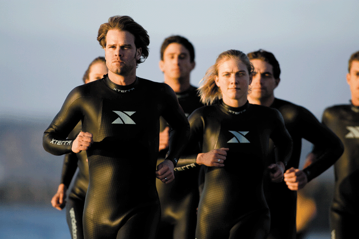 Xterra’s new Vendetta wetsuit blends new technology with proven features to provide an offering that allows you to take aim at your personal bests. On the newness front, Xterra takes full advantage of Yamamoto’s new #40 rubber, with every one of the Vendetta’s numerous panels being made of the super stretchy stuff. In the can’t-get-it-anywhere-else department, Xterra makes several of the panels – all of the ones that make up the front of the wetsuit of their exclusive XterrAir rubber. Utilizing a technique originally seen on some panels of Orca’s Apex suits, the XterrAir neoprene is made by taking a sheet of that #40 rubber and punching a lot of little holes in it. This “neoprene mesh” is then coated on the outside with the standard SCS coating and on the inside with whatever liner material is used. The idea is that you get a whole lot more air in a given volume of neoprene and therefore more buoyancy, and buoyancy is the name of the game. International triathlon rules limit the maximum thickness of rubber in a wetsuit, so XterrAir is a creative way to try and cheat this rule and get more buoyancy out of those five millimeters.