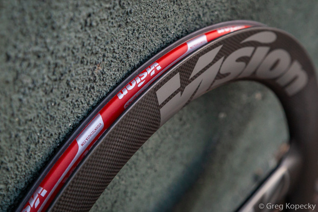 The rim edges have hooks, and Vision doesn’t list any restrictions on tire brand or model (i.e. as far as we’re aware, you can run any clincher or tubeless clincher tire that you’d like).