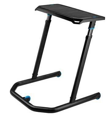 The Wahoo Desk is adjustable, with a simple one-push operation and an integrated cable management system. The surface of the desk is made of a slip-resistant material to keep stuff in place. While it may not be as cheap as the home hacks invented by Forum members Wahoo's dumb metal thing smartens up the Pain Cave.