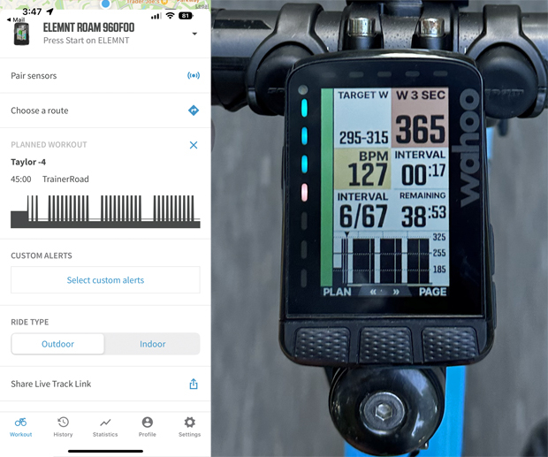 Outdoor structured workouts are becoming more common, and this is an area where the Wahoo excels. First, as noted above, it is very easy to import a workout from a variety of platforms in addition to its native integration with Wahoo X. But the real difference-maker is how the bike computer presents the workout during the ride, and that is all about the screens and fields. Wahoo is among the best, by a lot, in this category. First, the color highlighted fields make it easy to see if your metrics (like heart rate, power, etc.) are range. And if you use the side LEDs to help with power, like I did, it is even easier. No need to try to think about numbers, just do the workout and glance at the screen. You can customize the default workout screen, but I used it out of the box, and it was great for me. If outside structured workouts are a priority feature for you, then this should be on your short list.