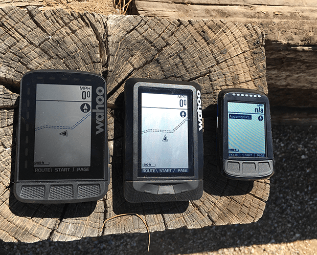The ROAM is really a Bolt supersized up to the Elemnt’s volume. (I show some images just above of the old Elemnt, the Elemnt ROAM, and the Elemnt Bolt side-by-side.) The buttons on the ROAM – both on the side and on the face – are the Bolt’s buttons (just upsized). The one complaint I have of the ROAM is that the buttons have a different feel to them when depressed. There’s a satisfying click when you depress the Bolt’s 3 below-the-screen face buttons. On the ROAM, not so much. I thought it might just be my unit, but I’ve now used a pair of ROAMs and this is just the ergonomics of this product. The buttons on the unit’s face belonging to the Bolt – which I can’t ride with because I can’t see the darned thing without a microscope – are the most satisfying buttons. The old Elemnt is my next favorite, and the ROAM my least. But small matter. The screen makes up for this complaint.