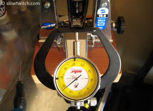 When the wheel is getting close to straight, I pull out the heavy artillery – the Morningstar R.O.C2-TECH dial gauges.