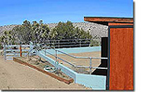You'll turn "uphill" from here, toward the mountains. That's "left" if you're coming from the #15, and it's "right" if you're coming down from the #14. It is a good idea to set your trip odometer to zero at this point. After ascending almost exactly 5.0 miles, STAYING ON THE PAVED ROAD, you'll reach the top of the grade. There's a green wrought iron gate on the left, it's always open. You'll go through here and onto a dirt road. Travel 3/10 of a mile, do not turn anywhere, and you'll see a second black wrought iron gate. You're here (sort of). Turn left and follow the fence line, keeping the fence on your right shoulder. After several hundred yards, you'll see a yellow house on the left. That belongs to Mark Montgomery and is likely where you're staying. The property on the right, inside the fence, is where you'll attend the workshop.
