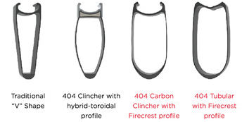 During the development of the Firecrest 404 wheels, Zipp engineers decided to take a slightly different approach than has typically been used in thinking about and designing the rim shape. In the past, they general approach has been to think about the tire as the leading edge of an aerodynamic foil and then designing the rim shape with that as the foremost assumption. Doing so works fairly well, but the trade-off in that decision is that this shape may not work particularly well in the rear part of the wheel, where the shape is "reversed" to the air flow. In other words, the approach was to design for the front half of the wheel to be as good as possible, and then the rear "is what it is". In some cases, the rim designers don't even go to that extent, and this is evidenced by the "V" shaped rims still being produced. Those shapes aren't even particularly good for the front half of the wheel.