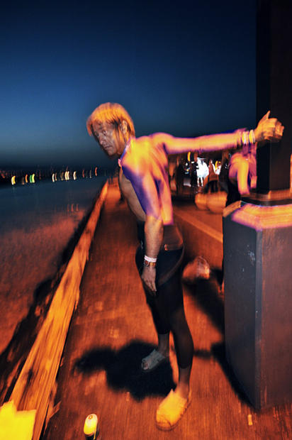 Jochen Dembeck of Germany returns to Ultraman 10 years after his 1999 6th ;place finish in 24:59:09. The blur of a long exposure in near-darkness seems to reveal an anxious spirit awaiting the challenge in daylight.