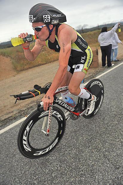 Ben Hoffman of Durango Colorado gulps Gatorade on his way to a 9th place finish.